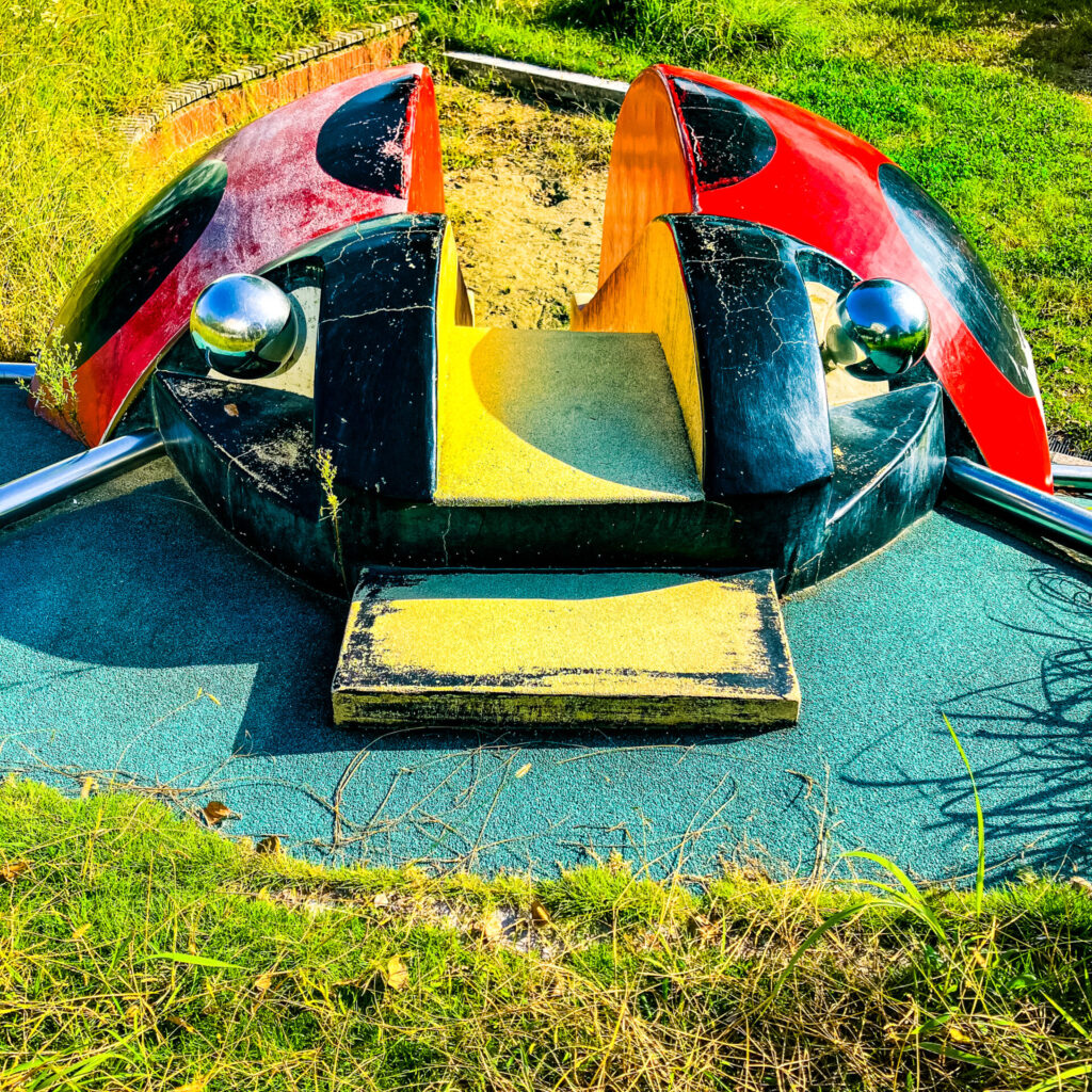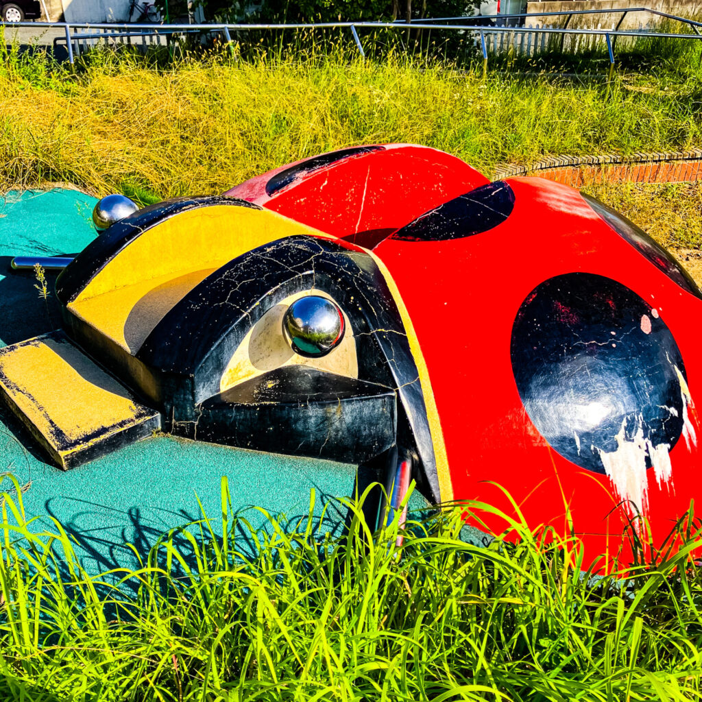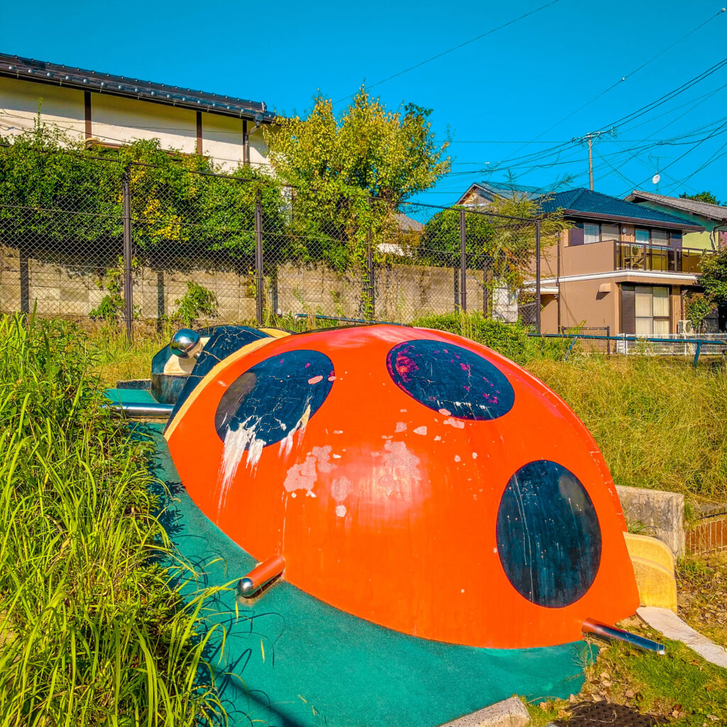 福岡県福岡市城南区の住宅街の一画にある公園「友丘西公園」。この公園で見つけたのは、テントウムシのすべり台。