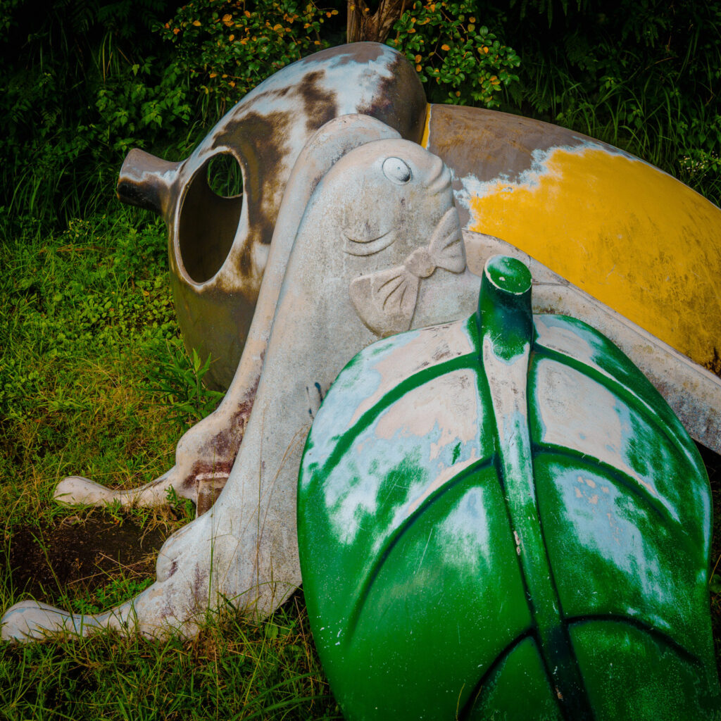やべり台No.15のピノキオのすべり台と同じ「八重山公園」にて発見したやべり台が、このどんぐりとドジョウのすべり台。