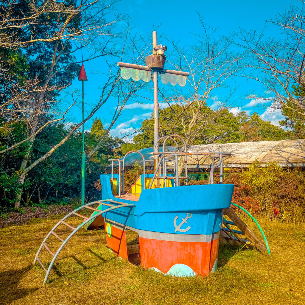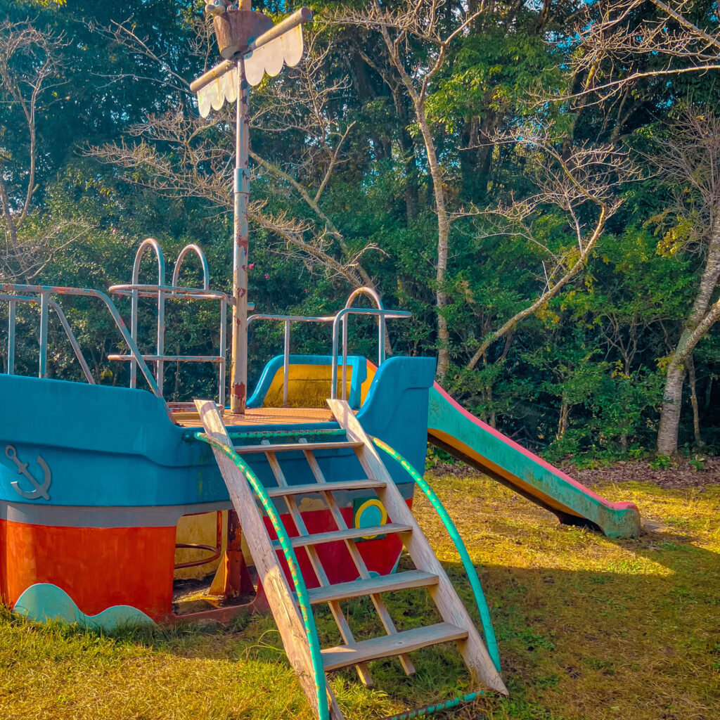 船!最近はもう少し複合的な遊具として、福岡県北九州市にある公園「勝山公園」だったりに海賊船の遊具として設置されている。このすべり台はその先駆けにあたるのだろう。
