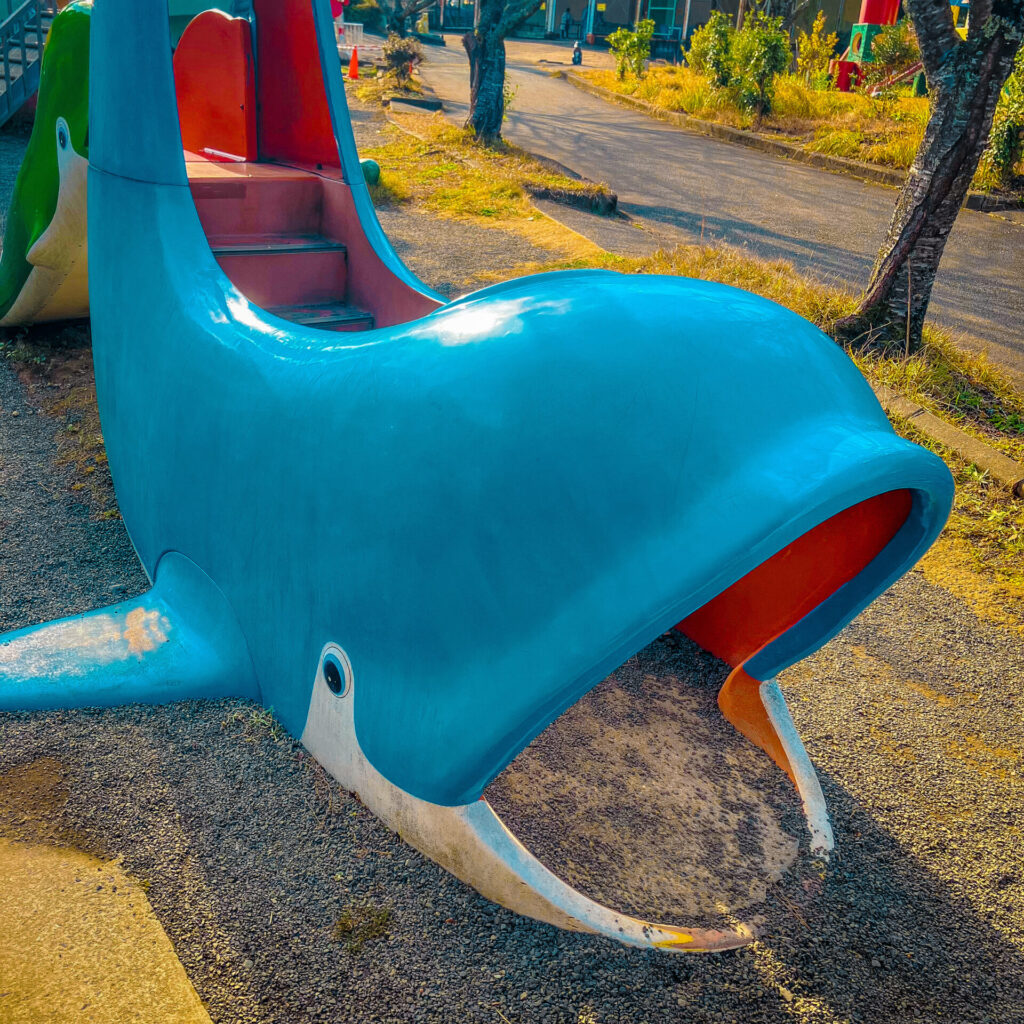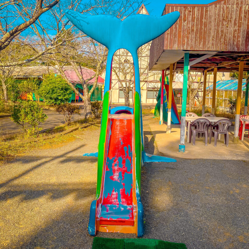 やべり台 【やべり台】イルカのすべり台【森とリスの遊園地メルヘン村】 2026.01.23 やべり台043 イルカのすべり台【森とリスの遊園地メルヘン村⑥】in佐賀県 佐賀県武雄市にあるテーマパーク「森とリスの遊園地 メルヘン村」にあるやべり台特集の6回目はこのやべり台。 イルカのすべり台。位置的には子イルカがミルクを飲んでいるシーンにあたるのだろうか。なぜにこのシーンがすべり台になったのだろう。 結構、難易度の高いすべり台で、このイルカの口をくぐってから階段を上がるようになる。 そんな、やべり台。 森とリスの遊園地 メルヘン村 GoogleMap Post Share Line note 【やべり台】春原公園のネズミとピーナッツのすべり台【宮崎県】 前の記事 【やべり台】清水公園のきのこのすべり台【愛媛県】 次の記事