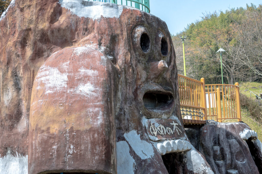 ついにレジェンド級「やべり台」の登場。「ゆめの木」とものすごくファンタジックな名前が書かれている、複合的なすべり台。ゼルダの伝説とかに出てくる動く木にも似ている、とにかくインパクト抜群のビジュアルを誇る滑り台である。