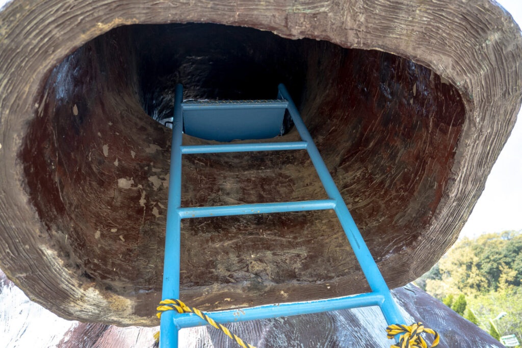 裏側は秘密基地のように入り組んでいて、おそらくはみんなを虜にしていたであろうこの遊具には2つのすべり台が設置されている。